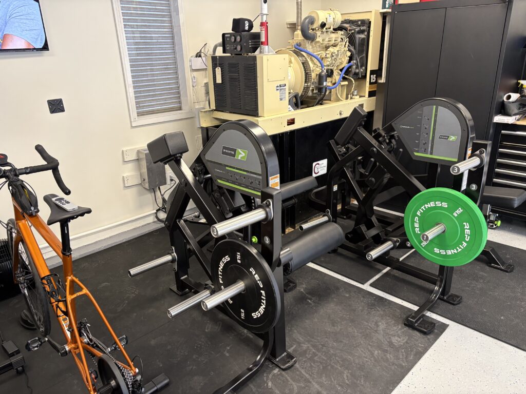 - Prime Fitness plate loaded leg extension/curl machine. This is such a quality machine. Feels incredibly solid and being able to mess with the strength curve appeals to the engineer in me. Also my wife and kids like to sit on it when they hang out in the gym with me.